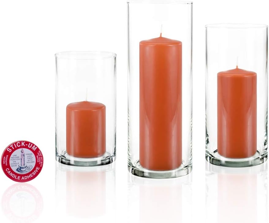 - Set includes 36 Slim Pillars (12 of each size: 2.25"D x 3", 5",7"H) and 36 Cylinders (12 of each size: 3.5"D x 6", 7.5",9"H) and 1 Stick Um