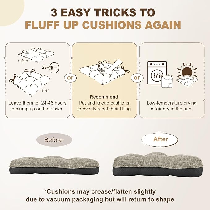 - Stay in Place: Attached ties and non-slip silicone bottom can double keep the seat cushion in place absolutely to prevent it from sliding. You don't need to adjust the dining chair cushions many times and just concentrate on enjoying your life