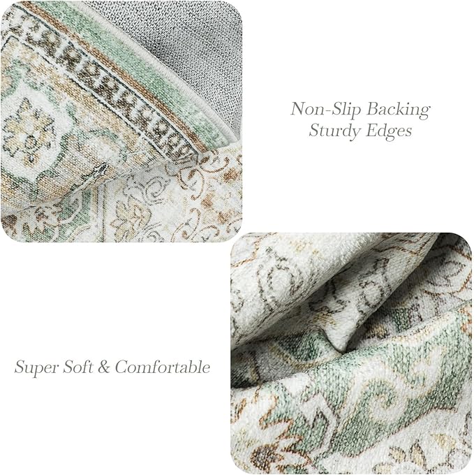 8x10 Area Rugs, Washable Rugs, Large Stain Resistant Area Rug for Living Room Bedroom Dining Room, Vintage Farmhouse Rug Green