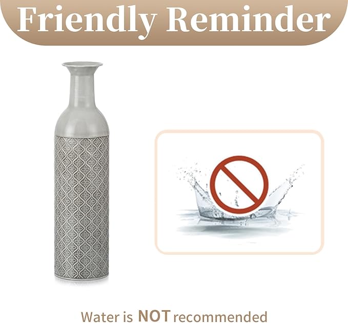 - MATCH WITH DRIED FLOWERS - Sziqiqi giant shabby chic floor vase is perfect for match with artificial flowers, pampas grass, twigs, wicker and long branches. Even without the ornamentation of plants, it also will be a great decoration for anywhere. Water is not recommended as it may cause the metal vase to rust. NOTE: flowers and plants are not included