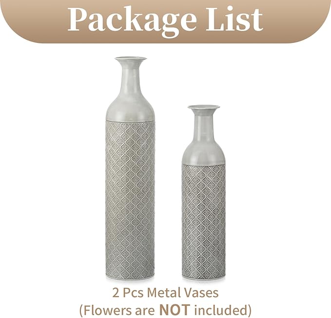 - SIZE OF 2 TALL FLOOR VASES - 2 different sizes of metallic vases meet your different purposes. Large - 27.6*6.3in/70*16cm; Small - 21.7*5.5in/55*14cm. This Retro floor vase can be used separately or grouped together