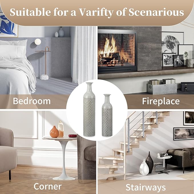 - FOR ALL SPACES - Our extra large cylindrical standing floor vase great for adding a modern or rustic feeling to the living room, dining room, bedroom, office, kitchen, hotels, restaurants, bars or hallway.This chic style floor vase is perfect as a warm gift for mum, woman, friend, wife, girlfriend, sister, and grandma on special days