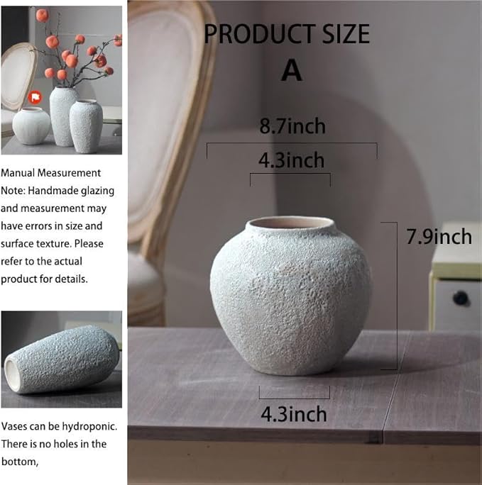 - 🌸【VINTAGE FARMHOUSE VASE】- These white ceramic vase comes in 3 different heights type for medium, large and tall applications. This flower vase features a distinct blistered coating that sets it apart. It's a perfect captivating centerpiece on your dining table, mantel, or sideboard.