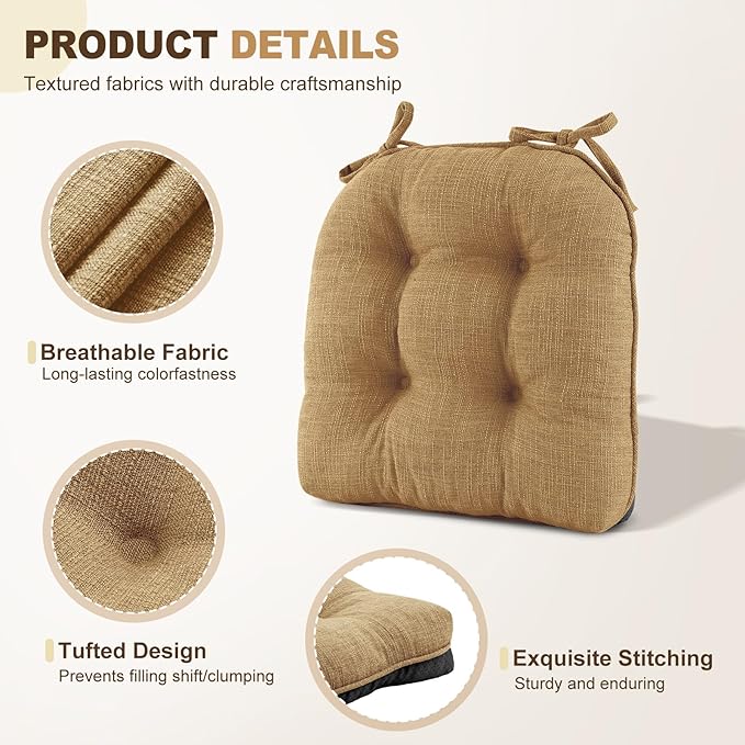 - Stay in Place: Attached ties and non-slip silicone bottom can double keep the seat cushion in place absolutely to prevent it from sliding. You don't need to adjust the dining chair cushions many times and just concentrate on enjoying your life