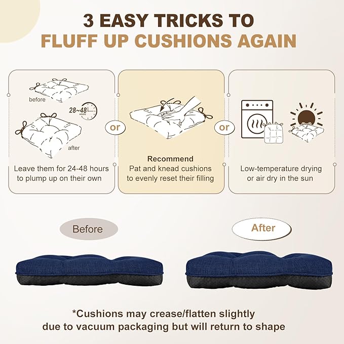 - Easy Care: The foam chair cushion can be used for a long time. They are not only practical but also easy to clean, just wipe spot lightly with a damp cloth and wait to dry. If you have any question, please contact us directly
