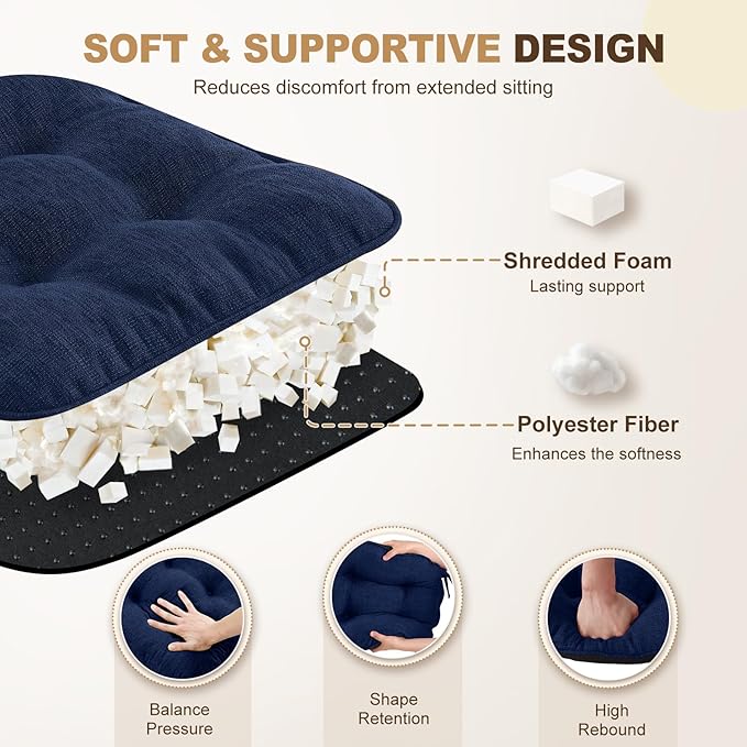 - Stay in Place: Attached ties and non-slip silicone bottom can double keep the seat cushion in place absolutely to prevent it from sliding. You don't need to adjust the dining chair cushions many times and just concentrate on enjoying your life