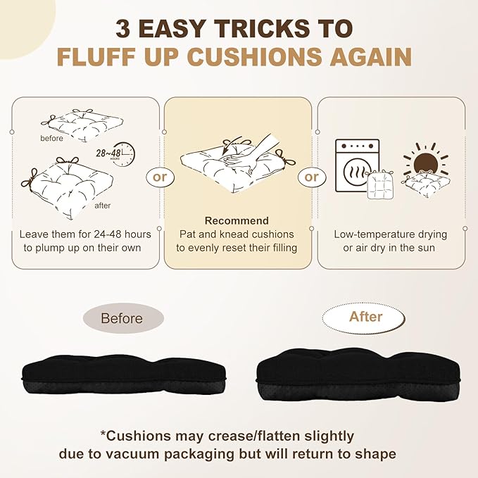 - Easy Care: The foam chair cushion can be used for a long time. They are not only practical but also easy to clean, just wipe spot lightly with a damp cloth and wait to dry. If you have any question, please contact us directly