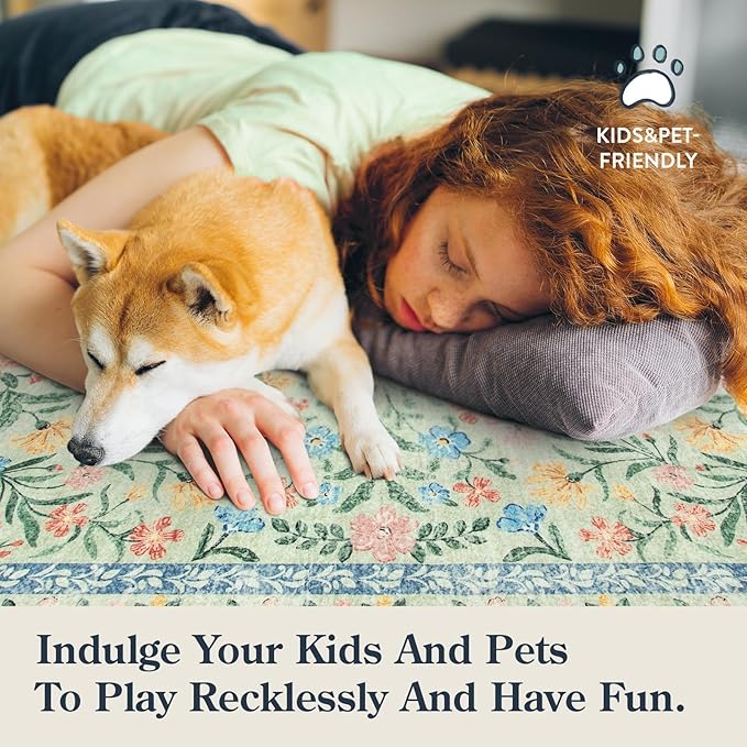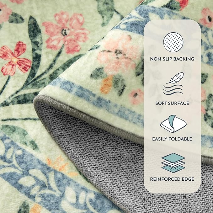 - [Chic & Dreamy Style] Our 4ft round rug features a soft-toned floral pattern for a romantic, vintage look. It easily complements boho, shabby chic, or girly room aesthetics, making it a cute decor piece for your bedroom or dorm