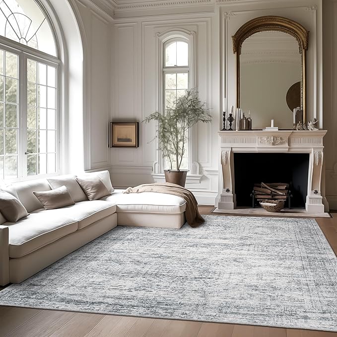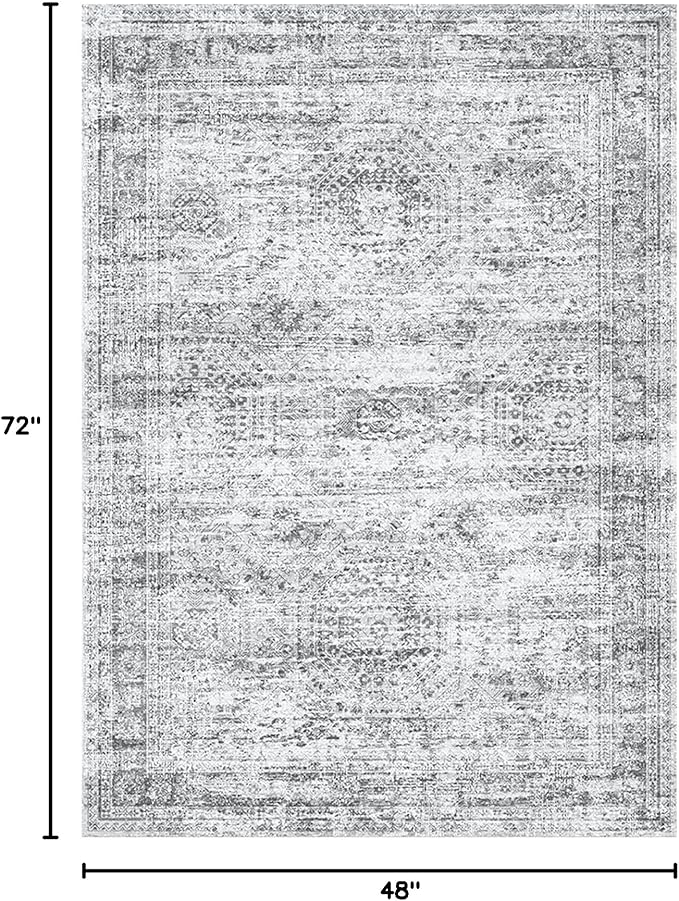 Area Rugs 4x6 for Living Room, Vintage Washable Rugs for Dining Room, Kitchen, Non-Slip Area Rug Grey