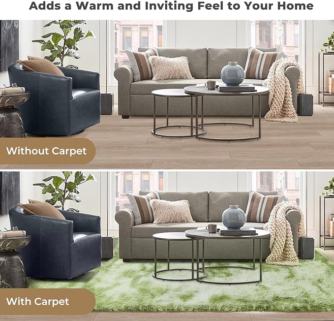 OPPODREAM Round Rugs 6ft for Play Room, Ultra Soft Circle Rug for Bedroom, 6 ft Fluffy Kids Carpet with 0.4" Thick Non-Slip Backing, Long Pile Shag Carpet, Fuzzy, Shaggy, Tie-dye Light Green & Green
