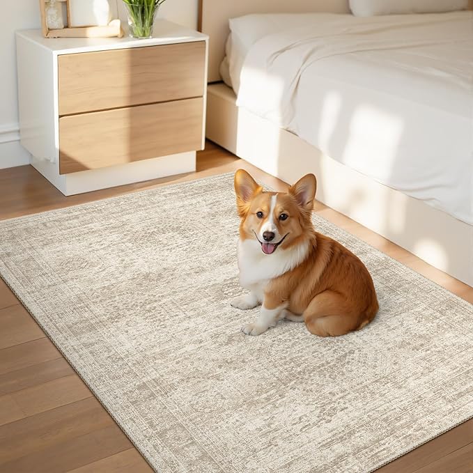 2x3 Washable Rugs for Kitchen, Floor, Entryway, Powder Room Small Area Rug Non-Slip Vintage Low Pile Throw Door Mat Beige