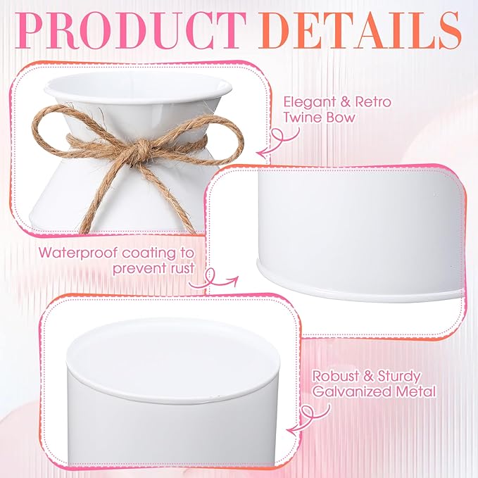 - Sufficient Quantity: purchasing our product provides you with 12 farmhouse galvanized milk cans, complimented with exquisite hemp rope bows; The generous quantity and diversity in decoration meet all your needs, satisfying various design tastes; Please note, the package does not contain flowers