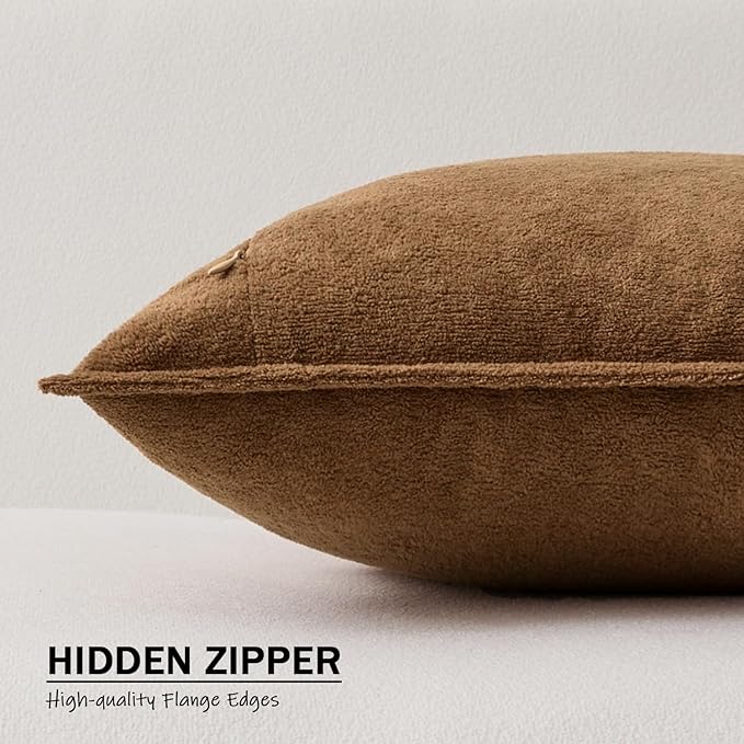 Kevin Textile Waterproof Decorative Pillow Covers Brown 12x20 Inch Pack of 2 Soft Boucle Textured Lumbars Cushions Elegant Accent Pillows for Couch Sofa Chair Bed Home Decor Indoor Outdoor