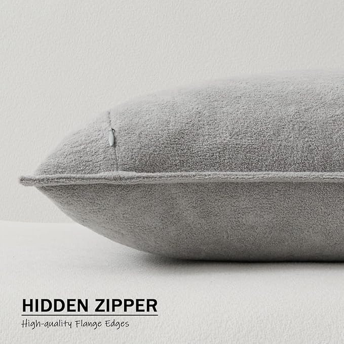 Kevin Textile Waterproof Decorative Pillow Covers Light Grey 12x20 Inch Pack of 2 Soft Boucle Textured Lumbars Cushions Elegant Accent Pillows for Couch Sofa Chair Bed Home Decor Indoor Outdoor