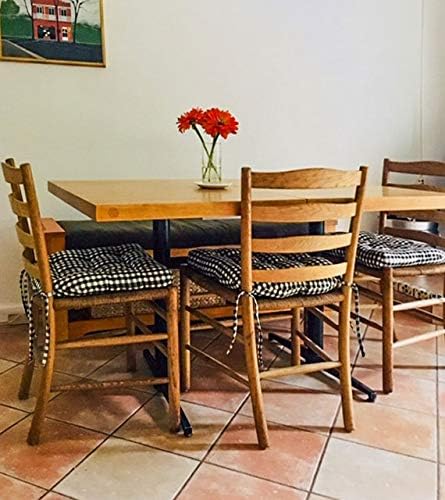 - Machine Washable Indoor Chair Cushions: These kitchen chair pads are machine washable for easy cleaning and maintenance; kitchen seat cushions are reversible to the same Farmhouse Check Black Design