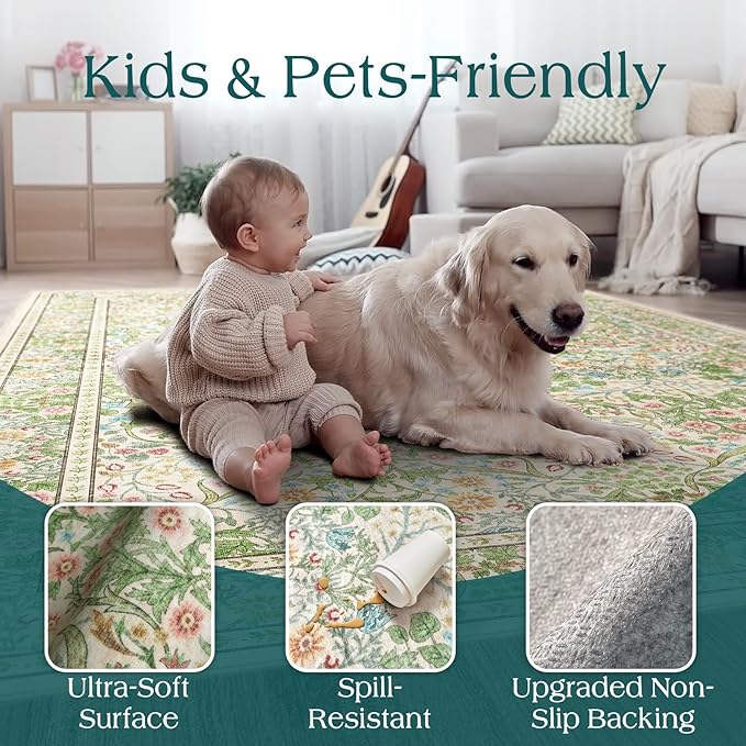 - [Machine Washable Area Rug] - Othilic machine washable area rugs combine elegance and practicality, making them Kids & Pets Friendly & More! Stress-free cleaning includes regular vacuuming and machine wash in cold water on a delicate cycle using mild, non-bleach detergent, then air dry flat or line dry in shade