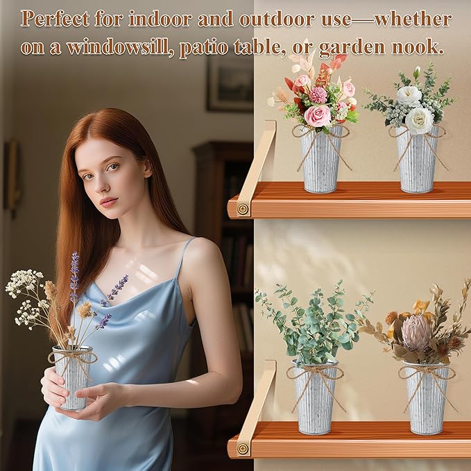 - Vases Designed for Dry: Rustic zinc charm for artificial flowers and plants. The flower buckets for flower feature sleek, geometric shape blend effortlessly with modern or rustic styles.