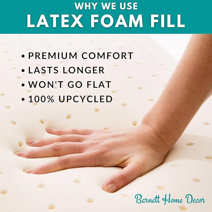 - Premium Latex Foam Fill – Resists flattening and maintains loft longer than polyester fiber fill for superior comfort