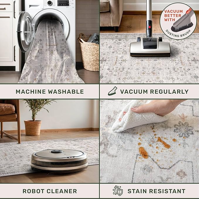 - Machine Washable: Keep your rug fresh with ease! Simply vacuum regularly, or for a deeper clean, toss it in the machine. Ideal as gray rug for dining room table, living room rugs and rugs for bedroom. Durable for everyday use