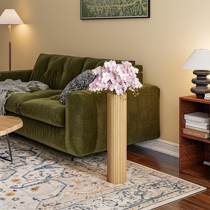 - 【Artisanal Natural Charm】Crafted from natural wood and refined rattan texture, this tall decorative vase infuses your space with a warm organic vibe. Its fluted surface mimics handmade grooves that add depth and a sculptural quality, making it an effortless centerpiece in boho, modern, or Japandi interiors. Whether placed solo or paired in a group, it blends craftsmanship with contemporary elegance.