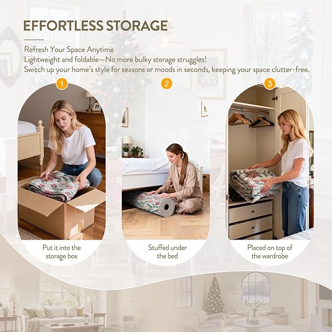 - [Ready for the Season] Arrives folded with temporary creases that smooth out naturally within a week. You can quickly set up this beautiful and warm accent rug to refresh your home's ambiance right after unboxing