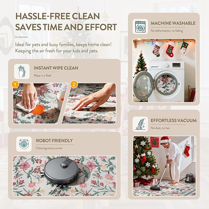 - [Easy Washable Care] Features a spill-resistant surface and is fully machine washable. For daily upkeep, simply vacuum on low settings or shake out dirt. This effortless care keeps your rug looking fresh and clean with minimal effort