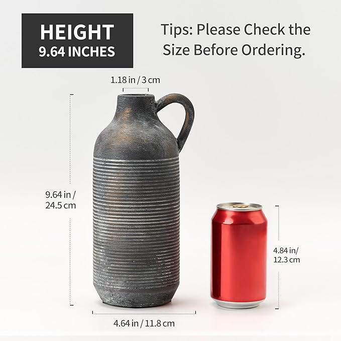 - Vase For Multiple Home Decor Styles: You can use this farmhouse vase enhance the beauty of room by decorating your living room, bookshelf, fireplace, entryway table with this black bronze vase. The terracotta vase is versatile and suitable for a wide range of home decor styles such as classic, traditional, farmhouse, vintage, minimalist or bohemian.