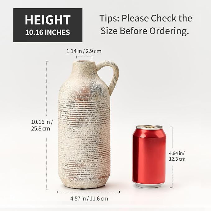 - Non-Slip Bottom Vase: This rustic vase for home decor measures 4.57" W x 10.16" H with a mouth diameter of 1.14", and is ideal for displaying artificial flowers, dried florals and fresh flowers. The bottom of the pottery vase is equipped with a non-slip pad, which prevents the flower vase from scratching the table or floor during movement during placement.
