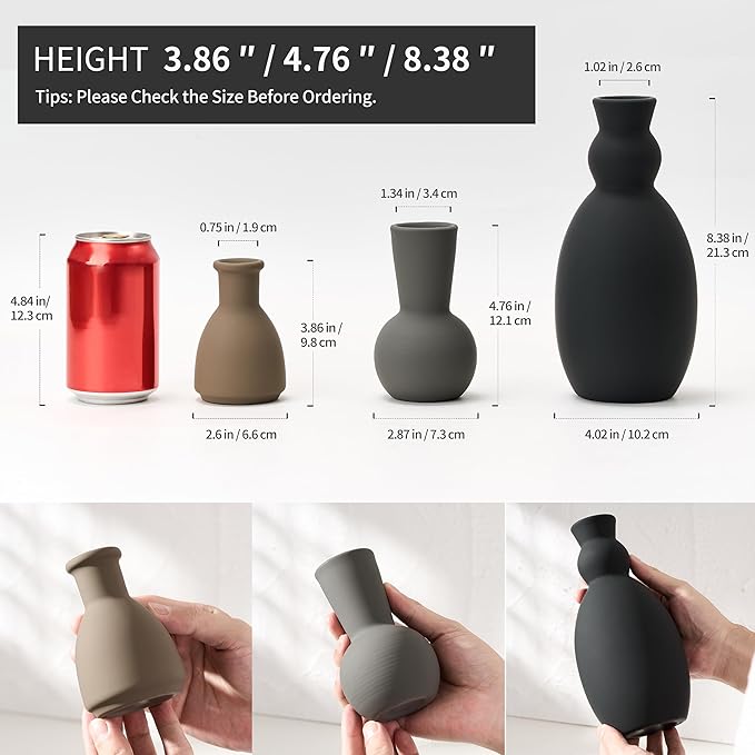 - [Handmade Decorative Vase]The vases have a Simple Nordic Matte Texture Surface Design, nice color that goes with any color decor, which are the compliment to all home decor. Made of high quality ceramic, which has a professional grade waterproof coating inside, allowing you to pour water, plant nutrient solution and other liquids without stress.