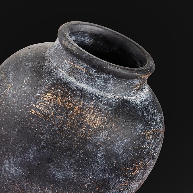 Ceramic Flower Vase, 6.7 Inch Rustic Farmhouse Decorative Vase Pottery Pampas Grass Vases for Home Decor Table Living Room Entryway Mantel Bookshelf Bedroom Bathroom Kitchen - Black