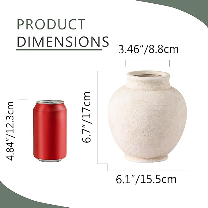 - For Multiple Home Décor Styles --- These decorative vases has excellent decorative effects due to its unique shapes and colors, which is the perfect home décor even without flowers. Whether your style is bohemian, modern farmhouse, rustic, or homey, they all fit in perfectly show off your lifestyle and decorative sense of style.(Length x Diameter=6.7"x6.1"x6.1").
