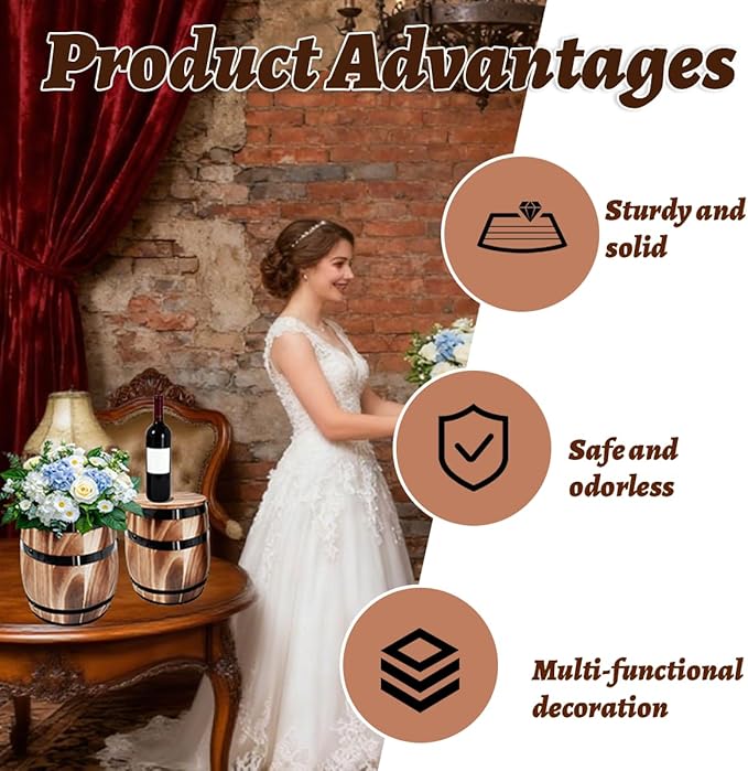 - Handcrafted: You will receive 2 handcrafted, premium oak whiskey barrel. This 8x6.5-inch wooden vase combines durability with vintage aesthetics. It serves as both a whiskey barrel ornament and a wooden planter for outdoor plants.
