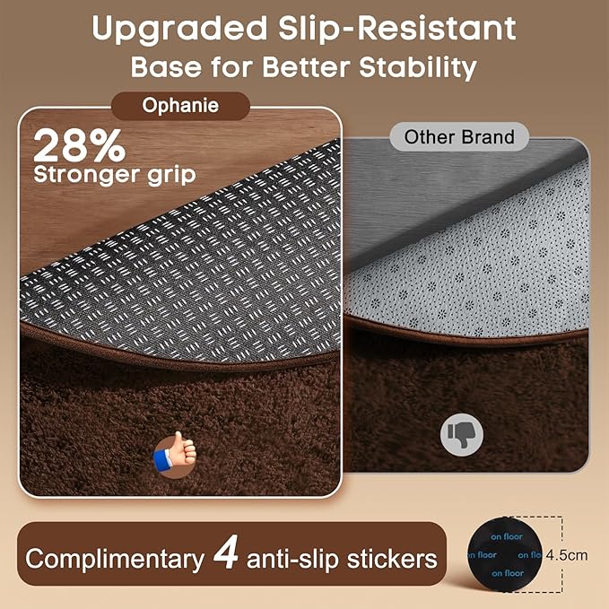 - Ultra Soft & Non-slip: Featuring a shaggy carpet surface, the Ophanie soft area rug is highly soft with a high-density sponge interlayer. This rug effectively reduces shedding, and the non-slip bottom with small, durable anti-slip dots enhances friction to prevent sliding.
