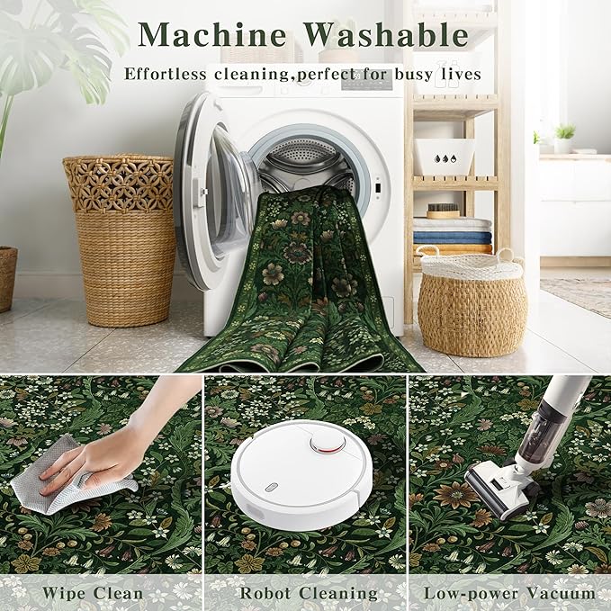 - Machine Washable Area Rug: Maintain this room rug effortlessly! Dust and dirt can be easily removed with a vacuum, while spills can be wiped up immediately with a sponge or cloth. For deeper cleaning, toss the rug in the washing machine for a thorough refresh.