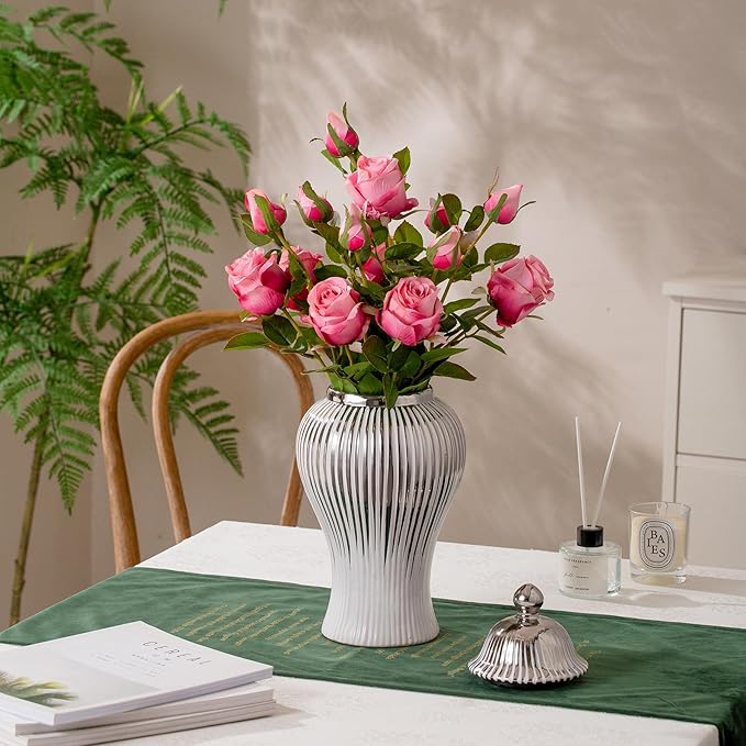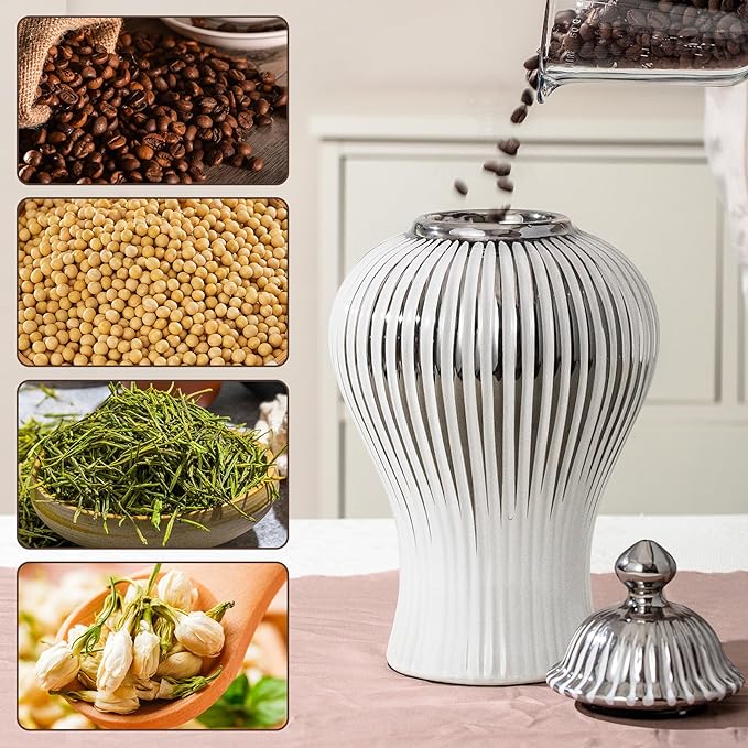 - MULTIFUNCTIONALITY: The ceramic ginger jar with lid can be used for storage.With the lid on, it's an elegant and versatile decorative piece. Remove the lid and fill it with fresh or artificial flowers to make a stunning home decor vase that is both decorative and functional for all your needs.