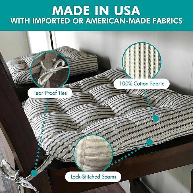 - Made in USA from 100% Cotton – Farmhouse Style Comfort - 100% cotton fabric offers breathable comfort for classic style farmhouse chair cushions or gingham chair cushions