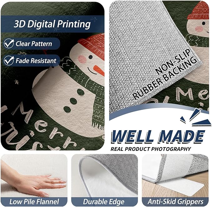 Kids Christmas Area Rug, 6x9 Rug for Bedroom, Snowman Xmas Tree Snowflake Washable Rugs for Living Room, Non Slip Soft Low Pile Stain Resistant Carpet, Christmas Holiday Room Decor